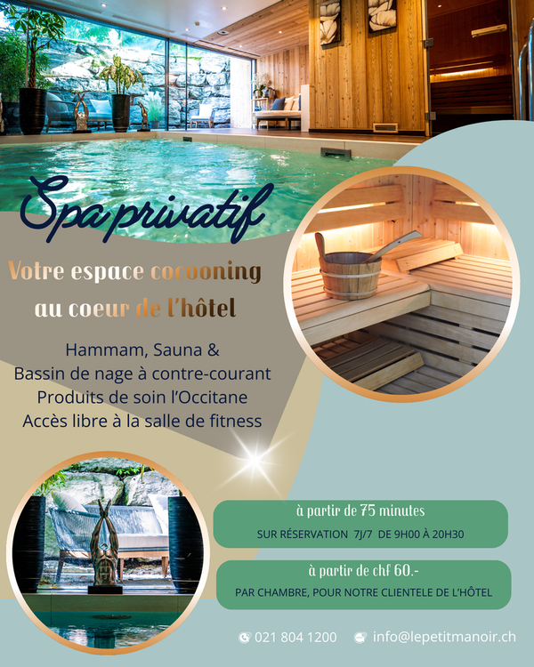 Informations et réservations par téléphone au +41 (0)21 804 12 00 ou par email info@lepetitmanoir.ch.